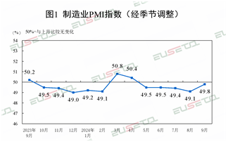 9月份,制造业采购经理指数(PMI)为49.8%,比上月上升0.7个百分点,制造业景气度回升。 从企业规模看,大、中、小型企业PMI分别为50.6%、49.2%和48.5%,比上月上升0.2、0