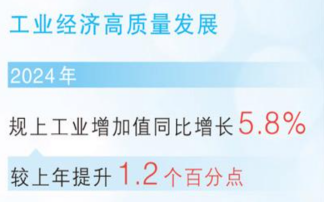 1月21日下午,国务院新闻办举行“中国经济高质量发展成效”系列新闻发布会,公布2024年我国工业经济高质量发展成绩单。 规上工业增加值同比增长5.8%,较2023年提升1.2个百分点;规上工业企