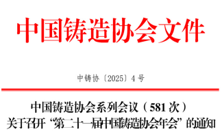 为进一步加强行业交流与合作,推动中国铸造行业的持续健康发展,中国铸造协会定于2025年5月17~20日在天津召开“第二十一届中国铸造协会年会”。