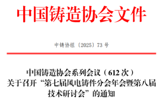 由中国铸造协会主办,中国铸造协会风电铸件分会承办的“第七届风电铸件分会年会暨第八届技术研讨会”拟定于2025年11月14 日~16 日在山东省济南市召开。 会议主题为“持续变革和技术创新,迎接数