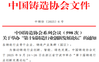 为推动铸造行业创新、智能、绿色发展,中国铸造协会定于 2025 年9月24~26 日在浙江省宁波市举办“第十届铸造行业创新发展论坛”。 本届论坛拟邀请国家部委有关领导出席,邀请行业专家重点围绕当